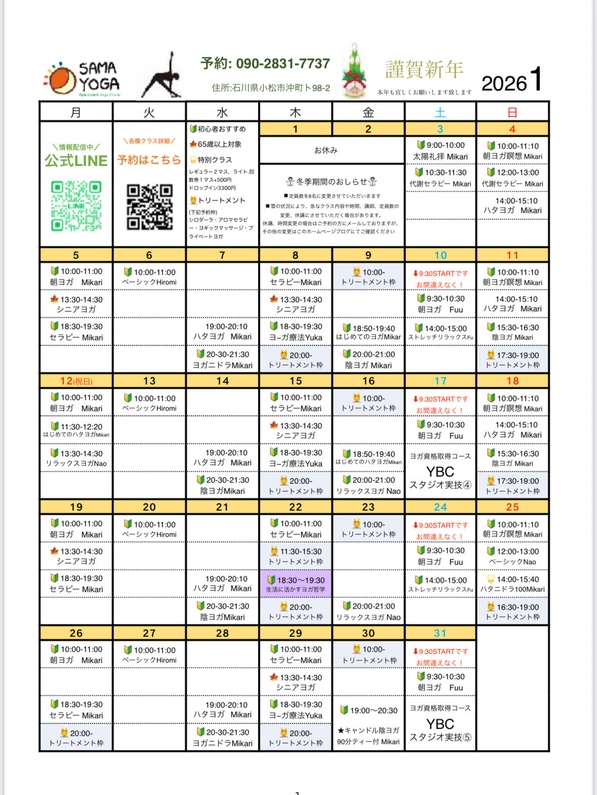◾️雪の状況により、急なクラス内容や時間、講師、定員数の変更、休講になる場合があります。