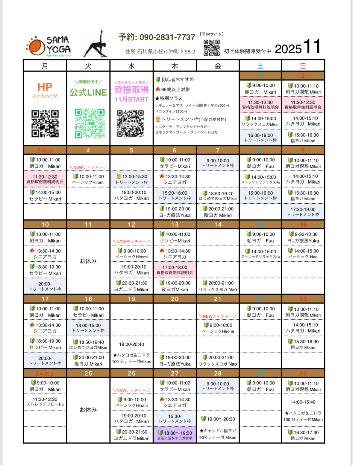 🧘クラスの種類についてはこちらhttps://samayoga.jp/class/