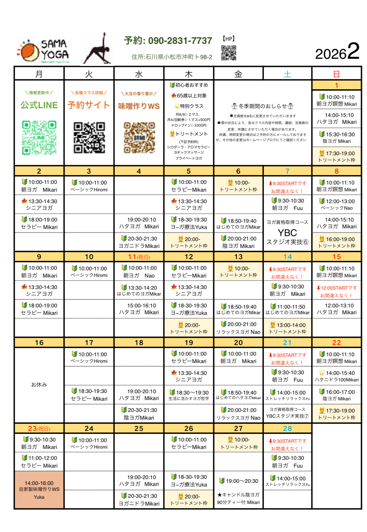 ◾️雪の状況により、急なクラス内容や時間、講師、定員数の変更、休講になる場合があります。